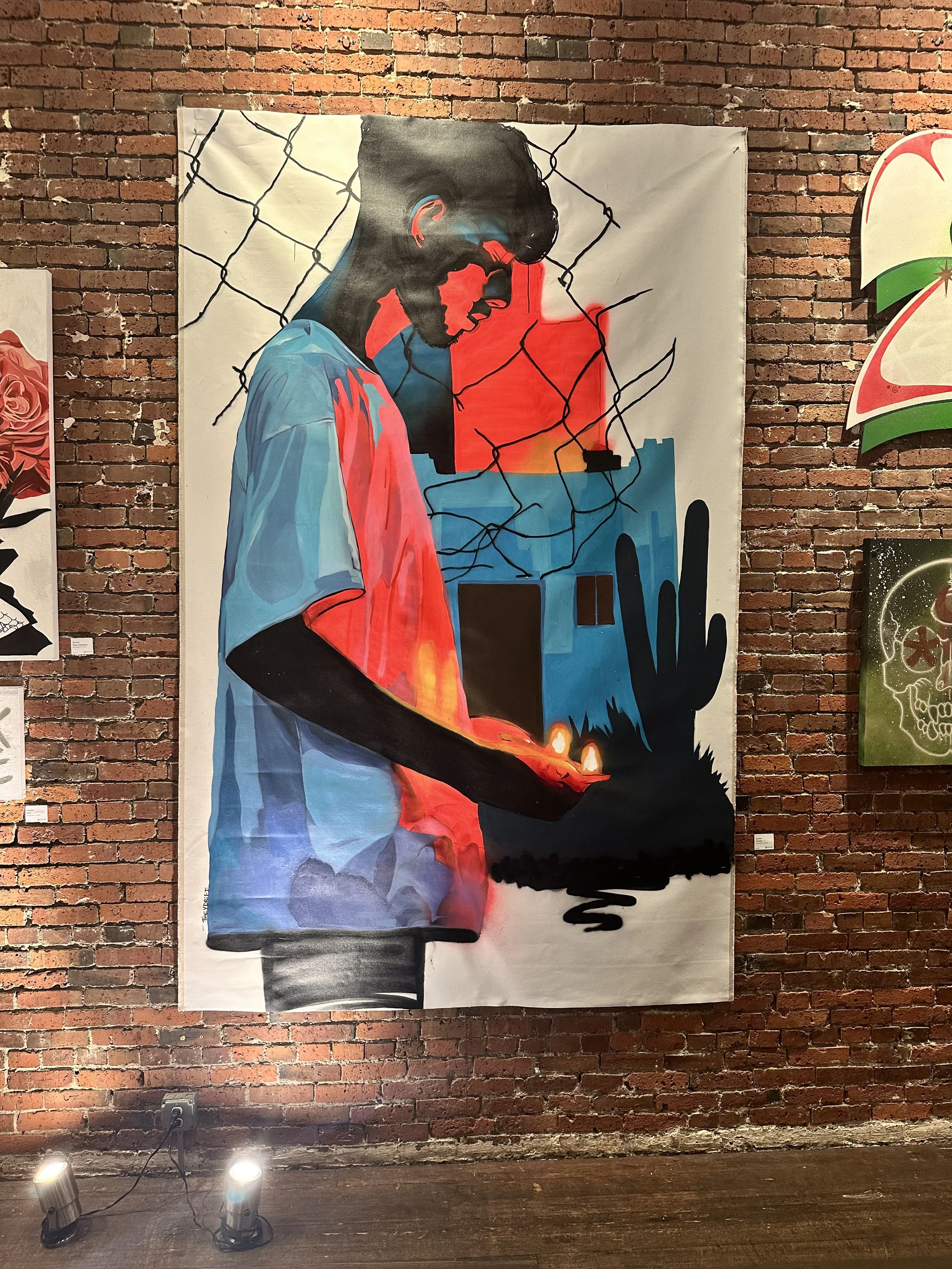 Carlos “theydrift” Aguilar is a Mexican/Chicano artist based in the Pacific Northwest whose work blends street art, portraiture, and abstraction into a bold visual language. With over 25 years of experience rooted in graffiti culture, his practice explores identity, movement, and cultural connection through a mix of realism, vibrant color blocking, and layered storytelling. Drawing from his heritage and life as a drifter, Aguilar creates work that bridges the gallery and the street—always grounded in community and driven by a deep respect for both tradition and innovation.